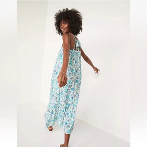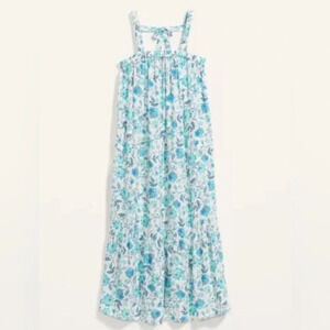 Old Navy Blue Floral Sleeveless Tie Back Cut Out Maxi Swing Dress - Size XS, NEW