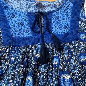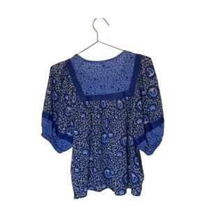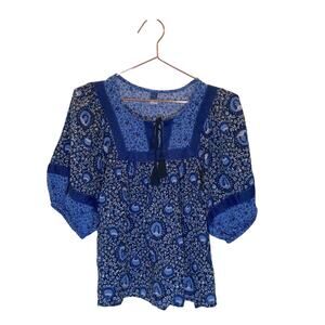 Old Navy Blue Floral Tassel Boho Balloon Sleeve Top - Small