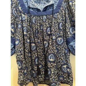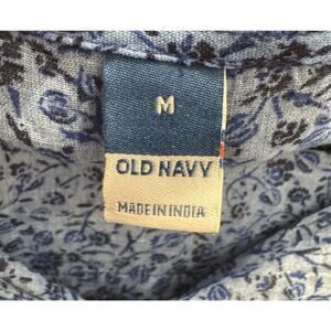 Old Navy Blue Floral Women’s Size Medium Peasant Top Boho Bohemian Tassels