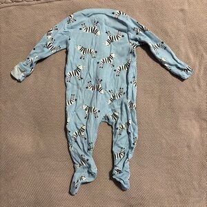 This adorable one piece from Old Navy showcases a playful giraffe print on a soothing blue backdrop. Crafted with enclosed feet and long sleeves, it offers warmth and comfort. The convenient closure system ensures easy dressing for any occasion.