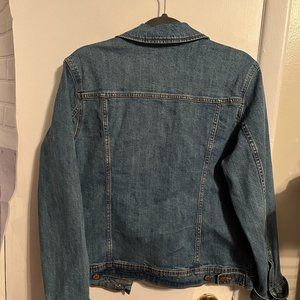 Classic denim jacket with button front. Features chest pockets and long sleeves. Timeless style for any wardrobe. Great condition.