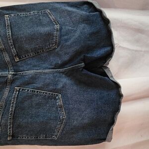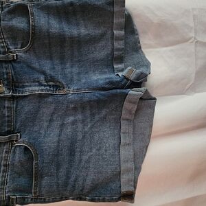Classic blue jean shorts. Rolled hem design. Comfortable fit.