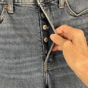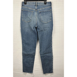 Old Navy Blue Jeans OG Straight High Rise 8 Tall Button Fly Stretch Raw Hem