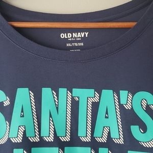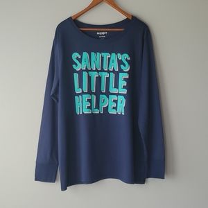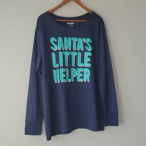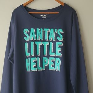 Old Navy Blue Long Sleeve Christmas Santas Little Helper Tee Shirt Womens XXL
