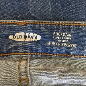 Old Navy Blue Medium Wash High Rise Denim Rockstar Super Skinny Jeans Stretch Ankle Zip fly with button closure