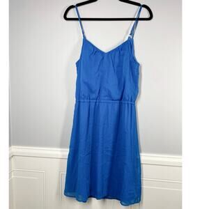 Chic blue mini dress. Spaghetti straps. Perfect for casual outings.