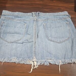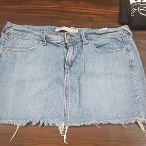 This blue mini skirt from Old Navy is crafted from classic denim, featuring a trendy frayed hem for a relaxed, casual look. Its mini length and light wash make it a versatile piece for everyday wear.