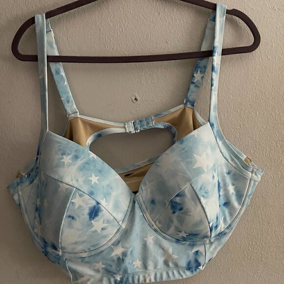 Old Navy Blue Stars Tie Dye Long Line Underwire Bralette Swim Top/Size 4XL PLUS