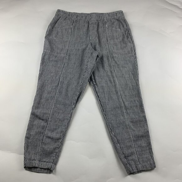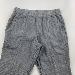 Old Navy Blue Striped Linen Blend High Rise Pull On Ankle Pant L