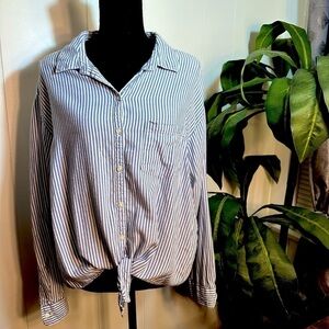 Old Navy Blue Striped Women’s Tie Hem Shirt Size XL