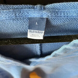 Old Navy Blue Sweatshirt Size large! Thin material. Perfect for summertime. Oversized on bottom with slits on each side so it doesn’t hug your waist.