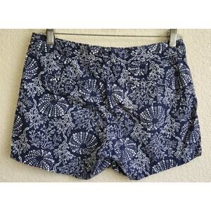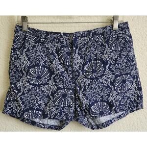 Old Navy Blue White Floral Print Flat Front Mid Shorts 16 Lightweight Pockets