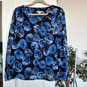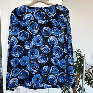 Old Navy Blue and Black Floral Blouse