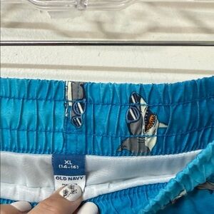 Dive into summer with these Old Navy swim trunks, featuring a stylish blue and gray color scheme. Designed for comfort and functionality, they come with an elastic waistband and quick-dry fabric, perfect for beach or pool days.