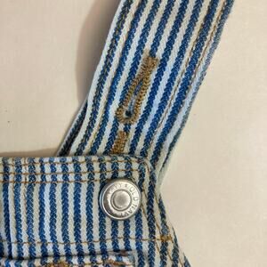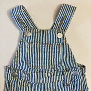 Old Navy Blue and White Striped Denim Pocket Bib Train Shorts Overalls