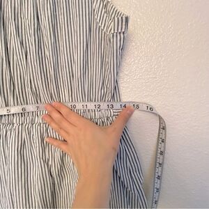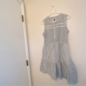 Old Navy Blue pin Stripe sleeveless Shirt Dress ruffle old money coastal Beach M