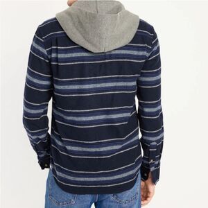 Old Navy Blue/Gray Striped Fleece Hooded Button Down
