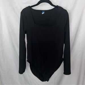Old Navy Bodysuit Black Fitted Long Sleeve Square Neck Snap Bodysuit