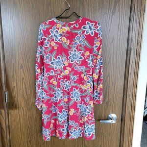 Old Navy Boho Chic Tassel Tie Red Blue Long Sleeve Fall Floral Dress Size Medium