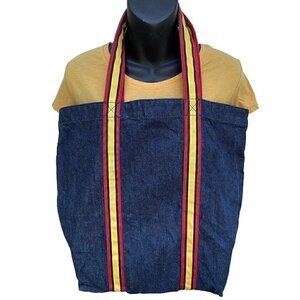 Old Navy Boho Embroidered Denim Tote Bag Ribbon Double Handle Striped Summer