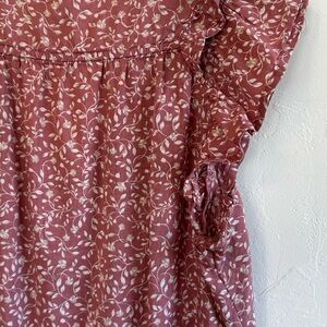 Old Navy Boho Mauve Floral V-Neck Flutter Sleeve Top with Ruffle Details Sz XS