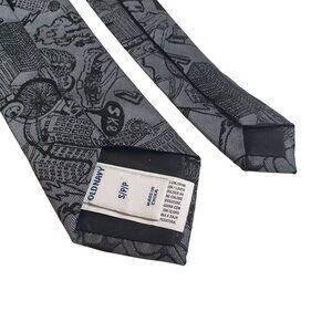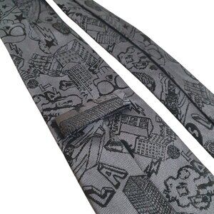A sleek tie featuring a playful city-themed graphic design in gray and black. Ideal for adding a modern, stylish touch to business or casual attire.