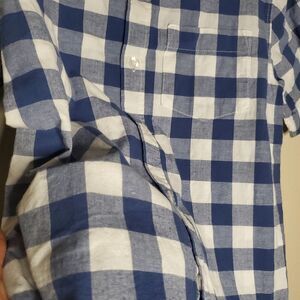 This is a gently used Old Navy Boys Short Sleeve Flannel Gingham Built-in Flex Button Up Shirt Size Medium (8). See images for material tags. This shirt is still in really good like new condition.