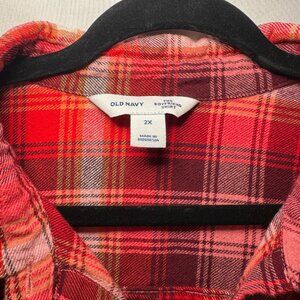 Old Navy Boyfriend Button Up Shirt Women's XX-Large Long Sleeve Red Plaid