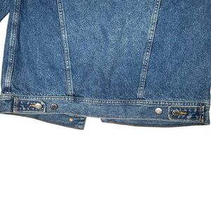 This denim jacket from Old Navy is a versatile piece for any wardrobe. It features a classic design with a medium wash, offering a timeless look that's both stylish and functional for layering. The boyfriend fit provides comfort and ease for everyday wear.