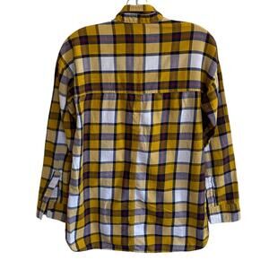 Old Navy Boyfriend Flannel Popover Shirt Yellow Plaid 1/2 Button Up Hi-Lo XS