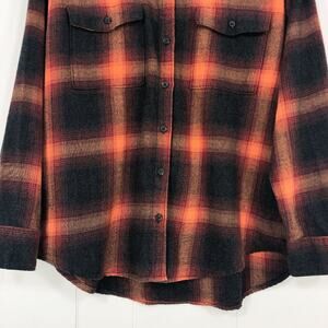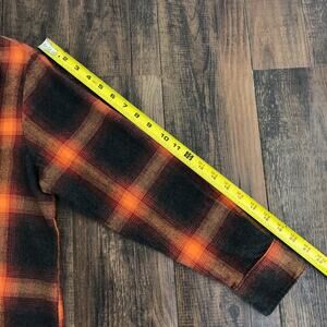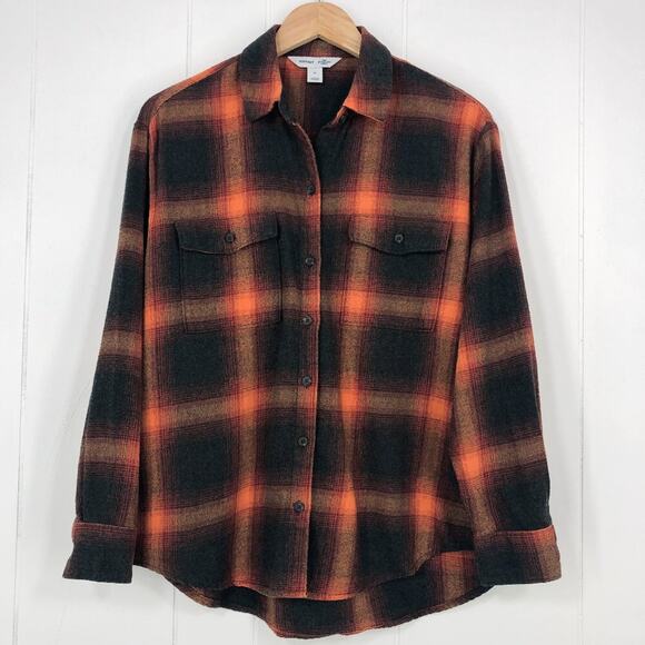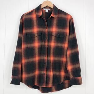 Old Navy Boyfriend Shirt Flannel Swiftie Evermore Size Medium Orange Black Plaid