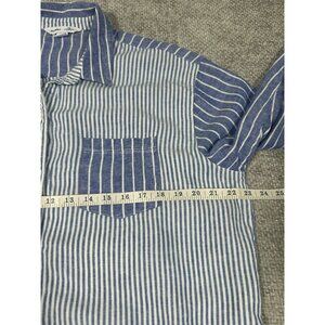 Old Navy Boyfriend Shirt Womens Large Blue White Striped Linen Blend Beach