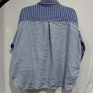 Old Navy Boyfriend Shirt Womens XL Blue White Stripe Linen Blend Button