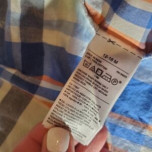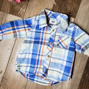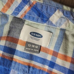 Old Navy Boys 12-18m Plaid Button Down Shirt Blue Orange EUC