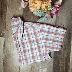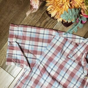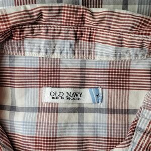 Old Navy Boys Button Down Shirt Size Large White Blue Burgundy Gray Plaid EUC