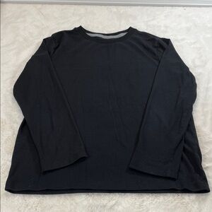Essential black tee with long sleeves. Ideal for layering or solo wear. Comfortable and versatile.