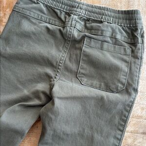 Gently used. No holes or stains. Light wear. Functional drawstring.