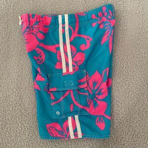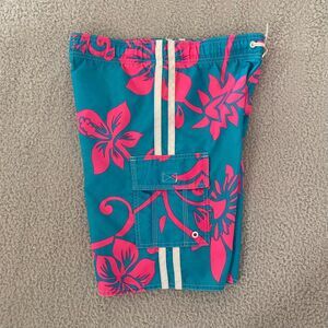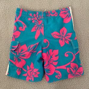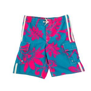 Old Navy Boys Swim Shorts Pink Floral Size M Cargo Pockets