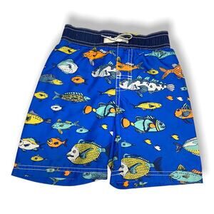 Old Navy Boys Swim Trunks Bathing Suit Shorts Size 3T Fish Print Blue Swimsuit
