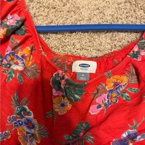 Old Navy Bright Orange Floral Tank Top, Size Medium