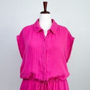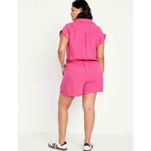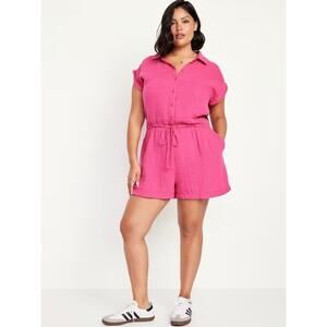 NWT Size XXL Old Navy Short Sleeve Romper. Bright pink 100% cotton fabric with a gauzy texture. Collar neckline with a button-up top. Drawstring waist. Pockets! Breathable and lightweight. So cute!