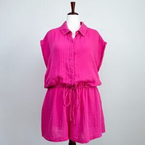 Old Navy Bright Pink Cotton Gauze Button-Up Romper NWT