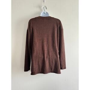 Old Navy Brown Plush Tee Long Sleeve V-Neck Top Small Soft Cozy Fall Basic