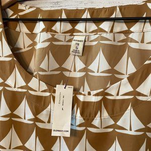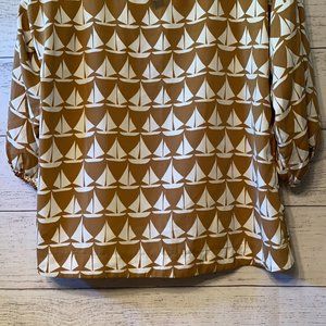 Old Navy Brown Tan Cream Sailboat Print Nautical Women's Blouse NWT Sz L