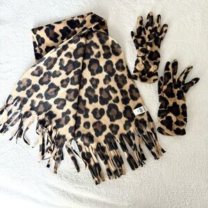 Old Navy Brown and Black Leopard Print Scarf and Gloves Set