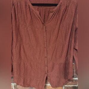 Old Navy Brown/Burnt Orange 3/4 Sleeve Eyelet Buttoned Blouse
