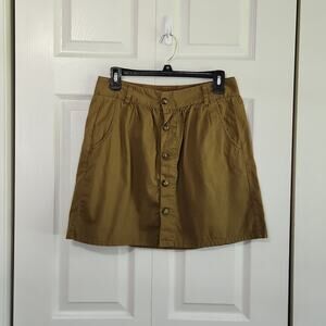 Old Navy Brownish Green Button Front Mini Skirt Size 4 Pleated Pockets Cotton