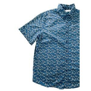 Old Navy Built-In Flex Mens Button Up Everyday Shirt Large Blue Fish Print