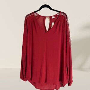 ✨ Old Navy Burgundy Crochet Sleeve Blouse - Size M (New with Tags!)