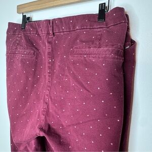 These ankle-length pants from Old Navy offer a sleek and modern fit, perfect for any occasion. Burgundy red with gold dot pattern. Great for casual, date night, girls weekend, or office.